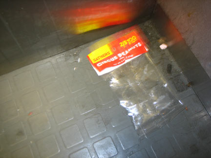I keep seeing this empty bag of circus peanuts in the elevator when we have to park at 9100 Wilshire instead of the regular AMPAS garage. |
