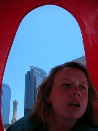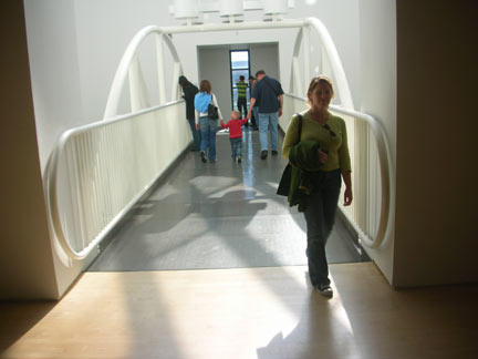 ![]() And then we went to the SF Moma. Here's Lisa just over the scary bridge. |