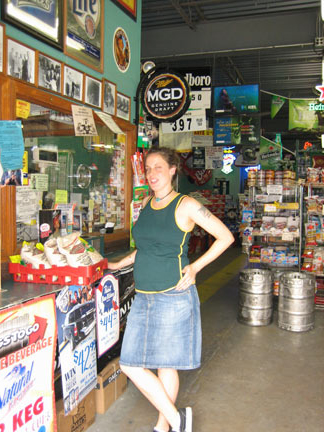 ![]() The bride! Buying beer! (For the wedding party, of course) |