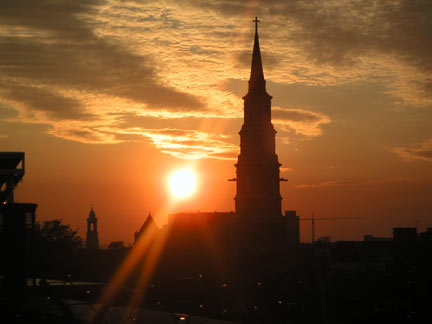 Dinner in Charleston, S.C., at a rooftop restaurant.