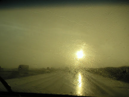 ... slush balls hurling down on the car -- this is with the wipers on super high speed. At one point we couldn't see ANYTHING but slush bullets zooming down on us.