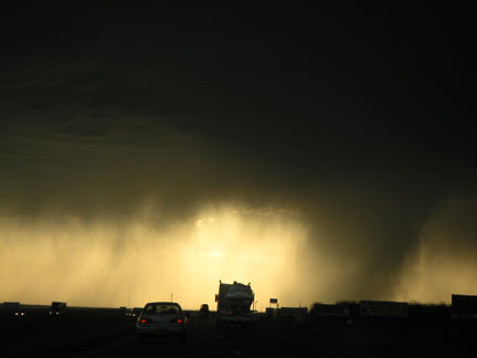 Our next trip took us through this amazing storm -- clouds falling, sun, lightning....