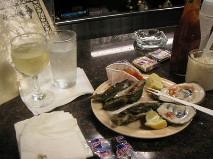 Sarah's dinner at Wright's -- the fried oysters tasted like salty jelly donuts....