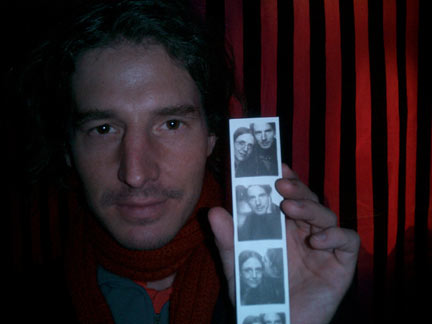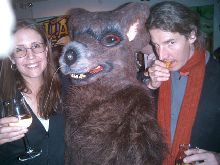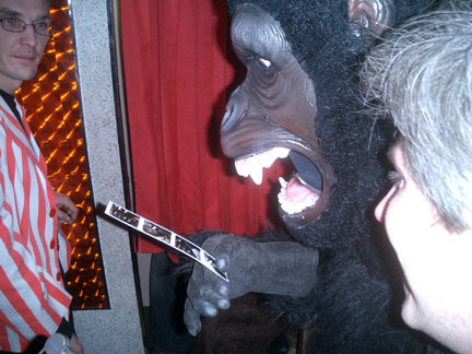 The gorilla at Tim & Eric's Adult Swim party looking at his photobooth pictures.