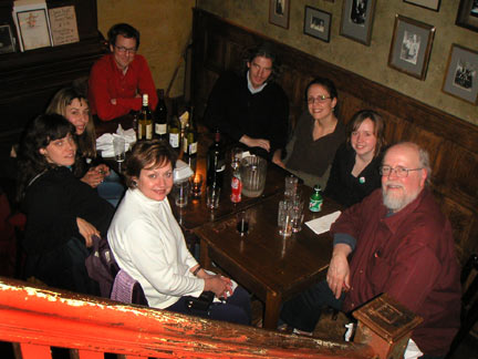 Counter-clockwise from lower left: Margareta, Becky, Shira, Matt, Paul, Sarah, Hanna and Phil Wms. at Mr. Martino's.