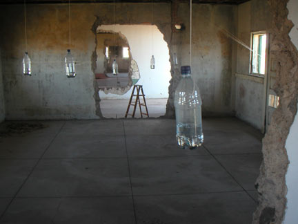 Another gallery in Marfa. Those are Dunkin Donuts lids.
